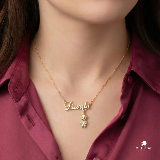 Gargantilha Dinda Menino Cravejada de Zircônia Folheada a Ouro 18k
