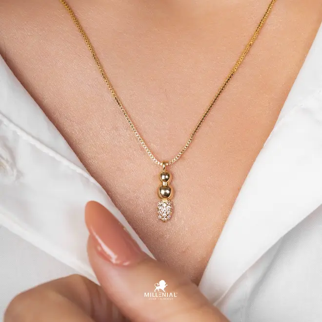 Gargantilha Esferas Lisas e Cravejada Folheada a Ouro 18k