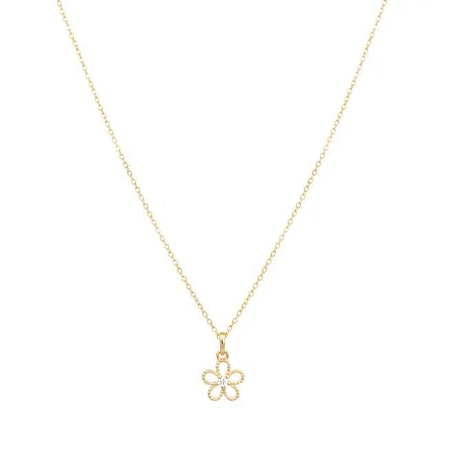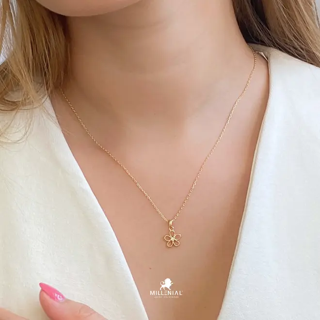A Gargantilha Flor com Zircônia Folheada a Ouro 18K é a definição de delicadeza e charme. Esta joia é um reflexo da beleza da natureza, apresentando um pendente de Flor minuciosamente cravejado com Zircônias que cintilam a cada movimento, iluminando o colo com sofisticação.