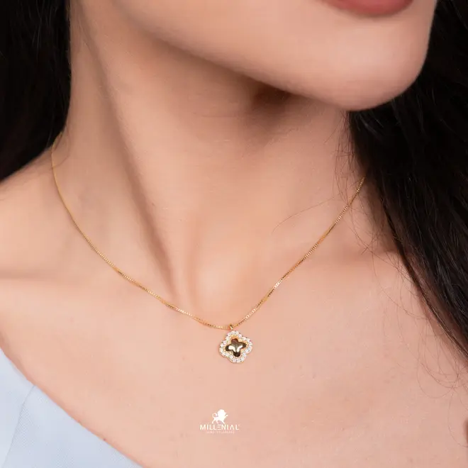 Gargantilha Flor Cravejada Folheada a Ouro 18k