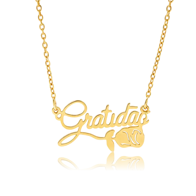 Gargantilha Gratidão com Rosa Folheada a Ouro 18k