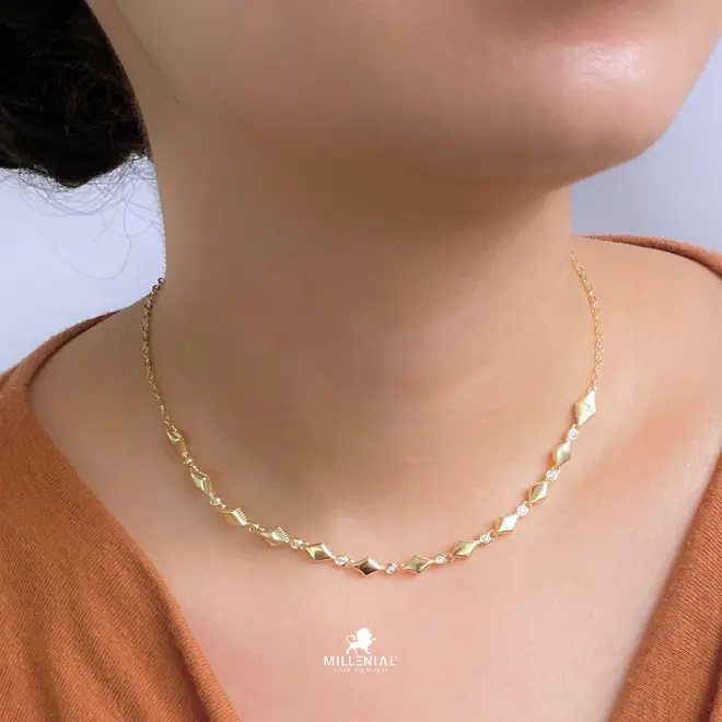 Gargantilha Losangos Ponto de Luz Folheada a Ouro 18k