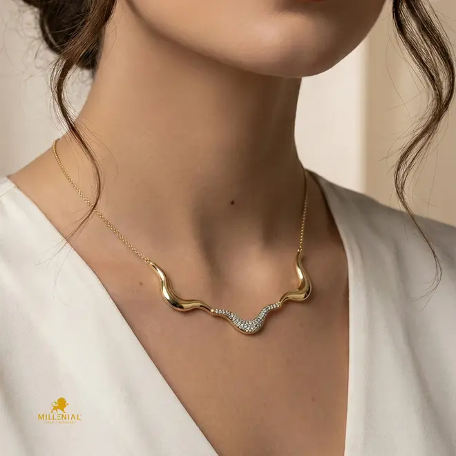 Gargantilha Orgânica Ondas Lisas e Cravejada Folheada a Ouro 18k