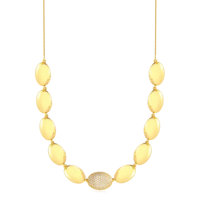 Gargantilha Oval Cravejado e Liso Folheada a Ouro 18k