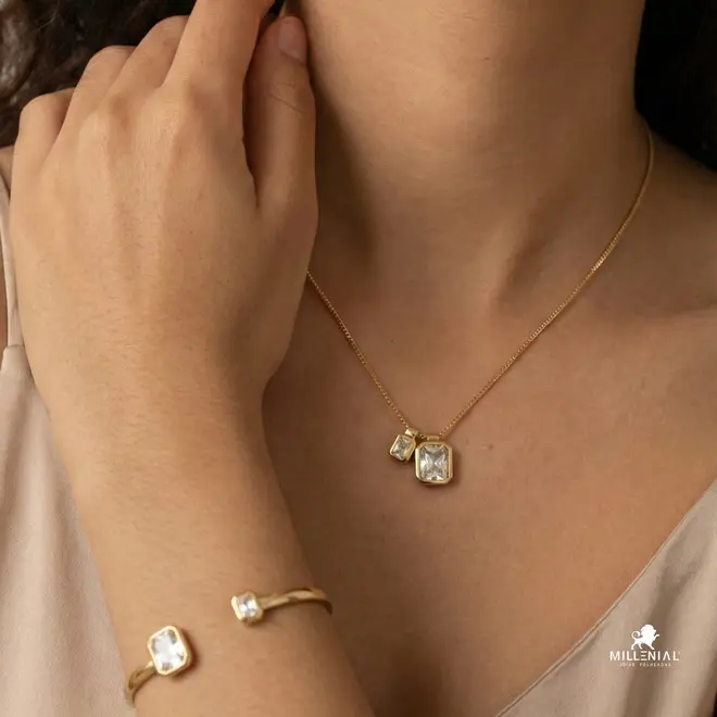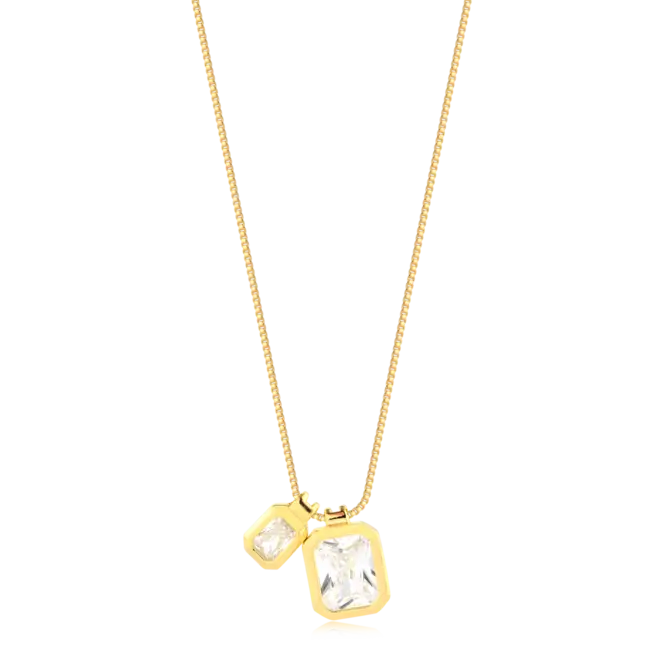 Gargantilha Zircônia Retangular Dupla Folheada a Ouro 18k