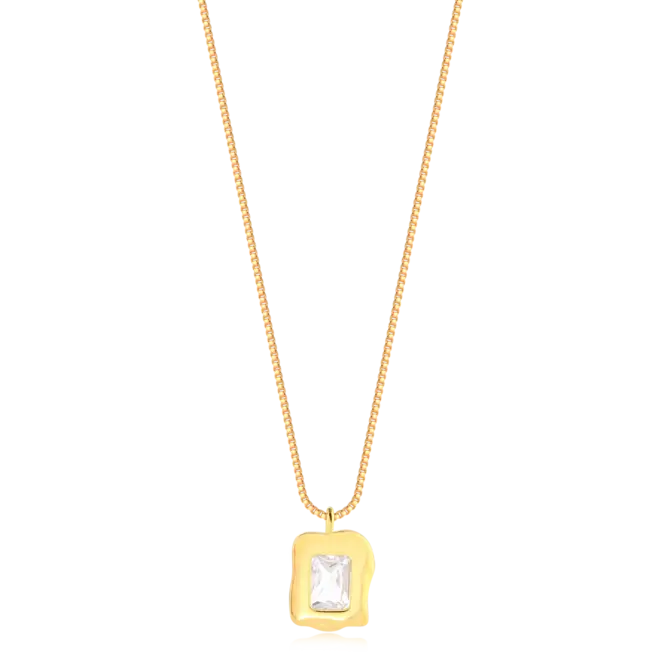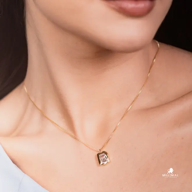 Gargantilha Orgânico Zircônia Retangular Folheado a Ouro 18k