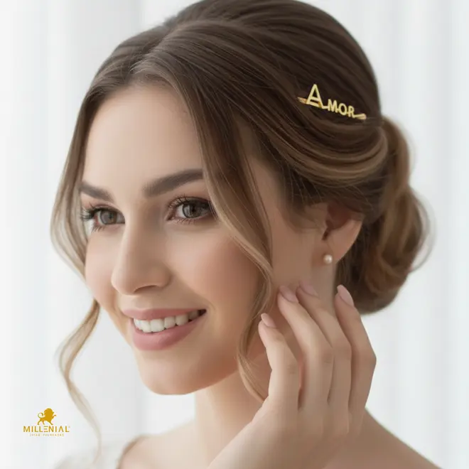 Grampo para Cabelo Amor Folheado a Ouro 18K