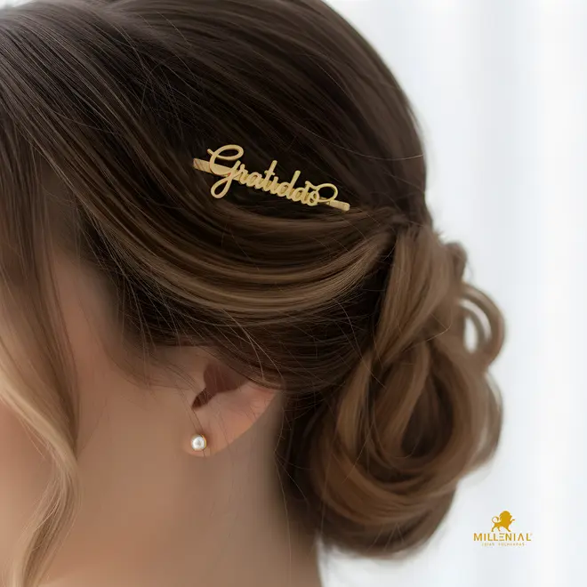 Grampo para Cabelo Gratidão Folheado a Ouro 18K