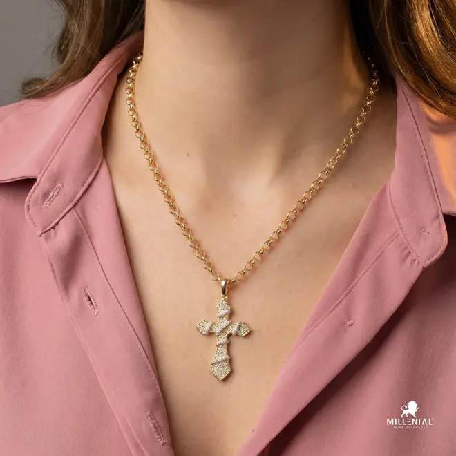 Pingente Cruz Com Pedras de Zircônia Folheado a Ouro 18k