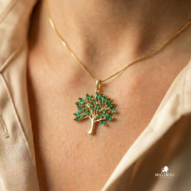 Pingente Árvore da Vida Cravejado em Zircônia Folheado a Ouro 18K