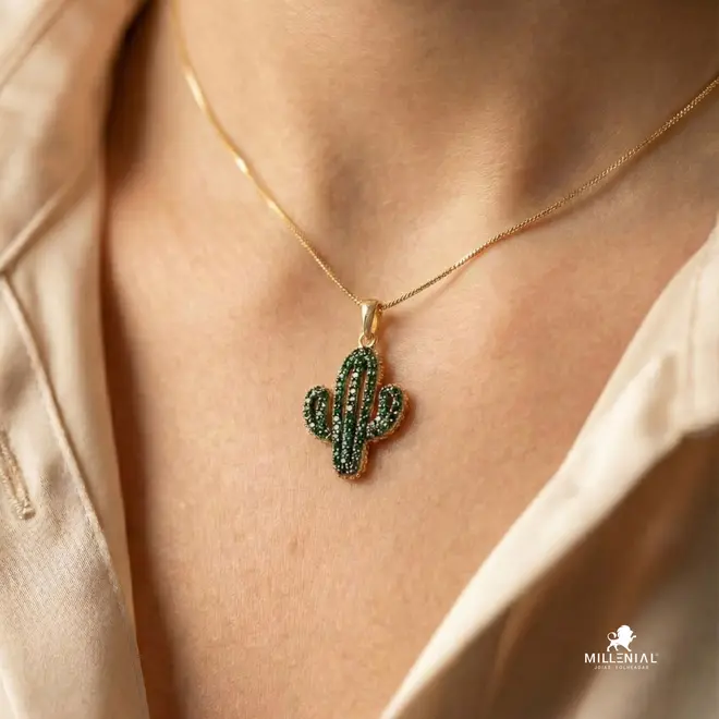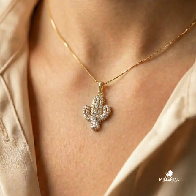 Pingente Cactus Cravejado em Zircônia Folheado a Ouro 18K