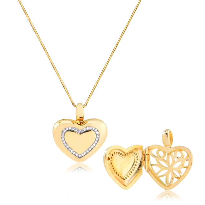 Pingente Coração Liso Cravejado de Zircônias Folheado a Ouro 18K