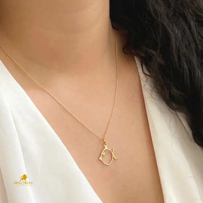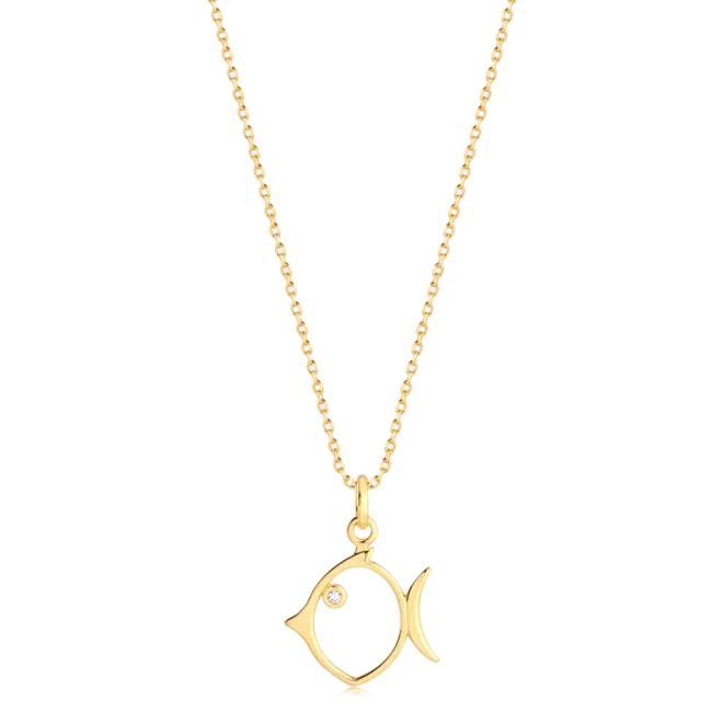 Pingente Peixe Vazado Ponto de Luz Folheado a Ouro 18K