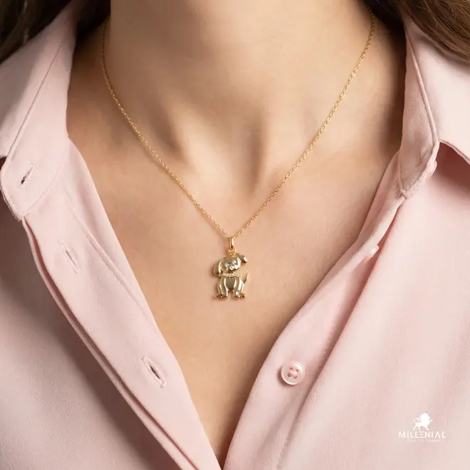 Pingente Pet Cão Com Pedras Cravejadas Folheado a Ouro 18k