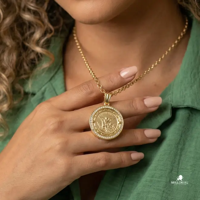 Pingente S. Miguel Arcanjo 30mm Zircônia Lateral Folheado a Ouro 18K