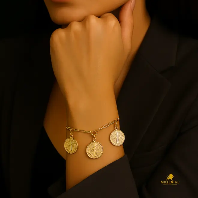 Pulseira Cartier São Bento 15mm Com Fecho Bóia Folheada a Ouro 18K