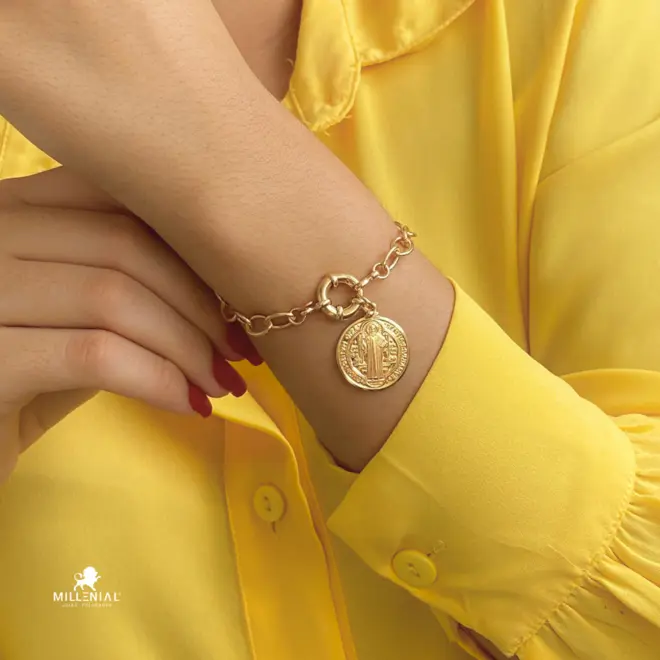 Pulseira Elo Oval São Bento Folheada a Ouro 18k