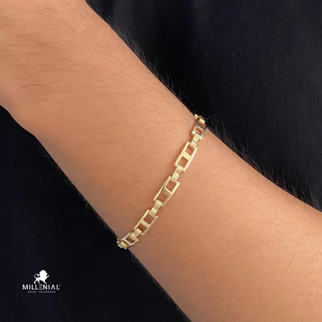 Pulseira Elos Retangulares Folheada a Ouro 18k