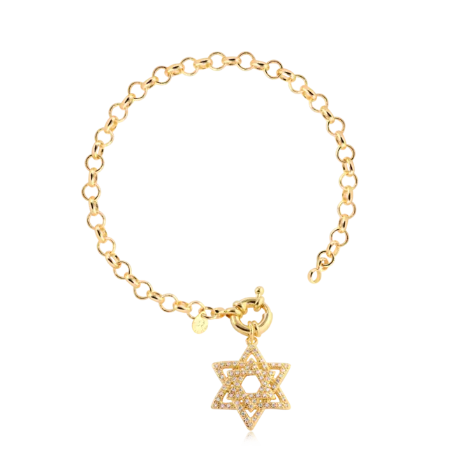 Pulseira Estrela de Davi Com Zircônia Folheada a Ouro 18k