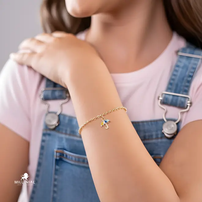 Pulseira Infantil Guarda-Chuva Folheada a Ouro 18k