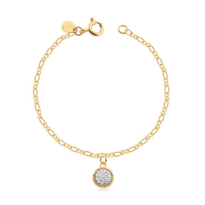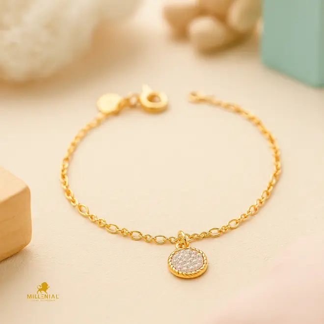 Com um design delicado e seguro, pensado para o conforto dos pequenos, esta pulseira é a primeira joia de uma vida inteira de brilho. O pingente cravejado com zircônias captura a luz de forma encantadora, representando a luz única que esta criança trouxe ao mundo e a promessa de um futuro radiante.